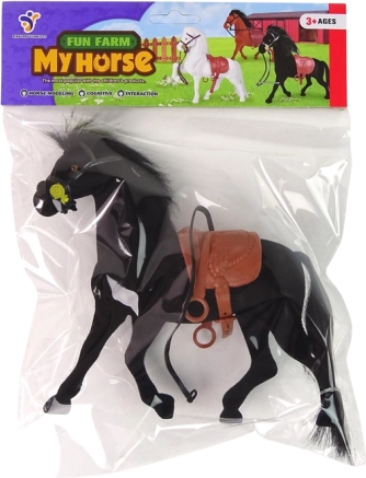 В комплект е кафяво седло, което придава на коня реалистичен вид и разширява възможностите за игра. Фигурките отговарят на стандарта EN 71 и имат CE сертификат, което гарантира безопасност при използване.