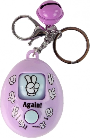 Търсите малък подарък или умен аксесоар, който едновременно да забавлява? Този лилав ключодържател с емблематичната игра камък, ножица, хартия е чудесен избор. При натискане на централния бутон в средната част се завърта показалец и избира случайно жест – идеално за бързо вземане на решения и забавление с приятели.