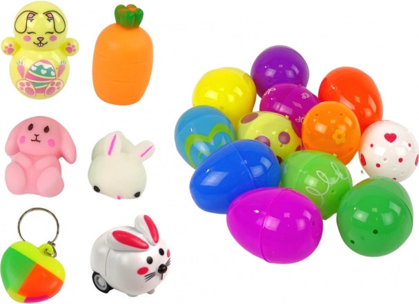 - 12 пластмасови яйца, 6 мини фиджет играчки, чантичка зайче
