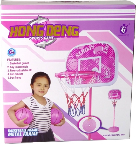 Към комплекта са включени розова баскетболна топка и помпичка за удобно напомпване.