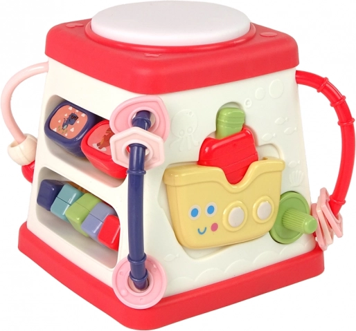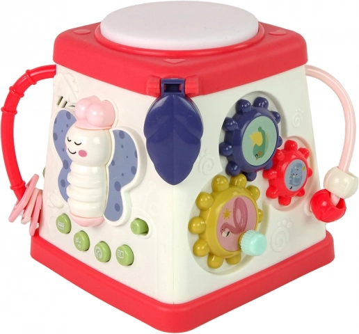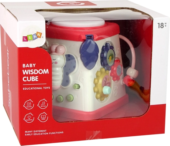 Това цветно интерактивно кубче съчетава няколко активности в едно умно цяло. Всяка страна развива различно умение: от укрепване на фината моторика, през развитие на слуха и зрението, до първи стъпки в английската лексика. Благодарение на пъстрите цветове и приятните звуци децата веднага ще заобичат играта.