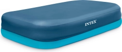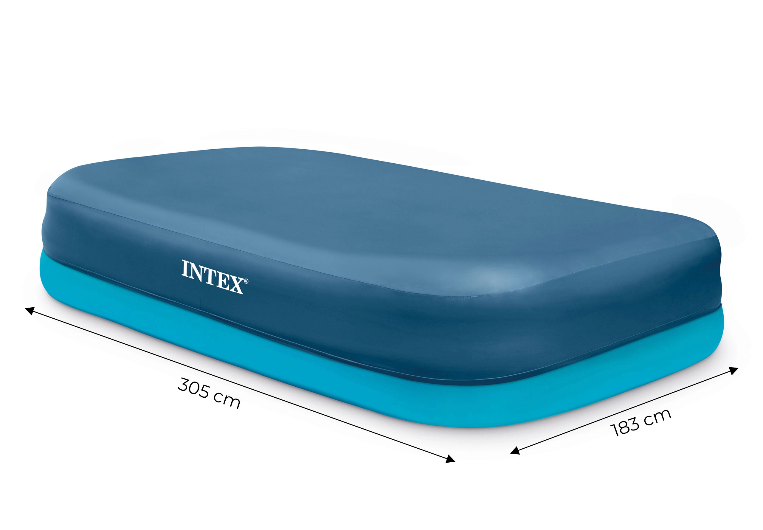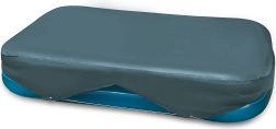 Практичното покривало INTEX 58412 надеждно пази водата в правоъгълни басейни 305 × 183 cm (съвместимо и с 262 × 175 cm) от замърсявания. Благодарение на издръжливия винил, отточните отвори срещу задържане на дъждовна вода и връвчиците за закрепване се използва лесно и помага басейнът да остане чист и готов за къпане.