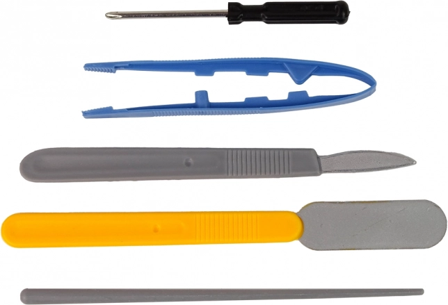 Част от комплекта е пълен набор аксесоари, който позволява на децата да започнат да изследват веднага – от готов препарат до епруветки и пинсета. Здравата пластмасова изработка се управлява лесно и е пригодена за безопасно и забавно обучение у дома и в училище.
