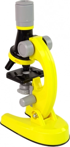 Този жълт детски микроскоп е отличен избор за първи стъпки в света на биологията и природните науки. Благодарение на въртящия се носач на обективи с три лещи лесно избирате увеличение 100×/400×/1200×, а плавното дофокусиране и практичната платформа за препарати осигуряват удобно наблюдение.