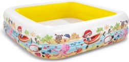 Надуваемият басейн с навес INTEX е идеален за лятно освежаване на децата в градината. Квадратната форма с размери 157 × 157 cm и височина 122 cm осигурява достатъчно пространство за игра, а капацитетът 280 l при 20 cm ниво на водата гарантира безопасни и удобни забавления. Издръжливият винил (0,25 mm) и меките надуваеми стени увеличават комфорта и безопасността.