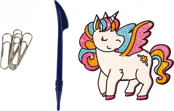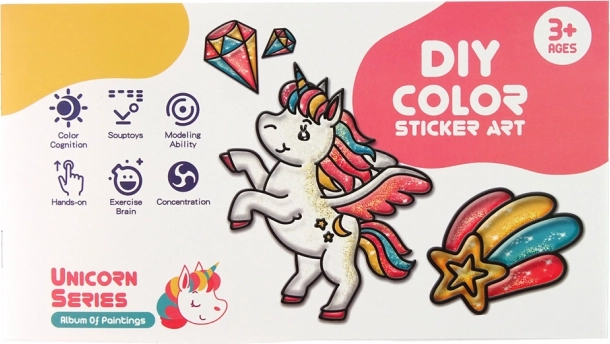 Този комплект включва разнообразни стикери с вълшебни еднорози, пъстроцветни дъги и блестящи звезди. Детето ви ще се радва на рисуване на собствените си дизайни. Стикерите имат само контур, а вътрешното запълване зависи от въображението на всяко дете. В комплекта ще намерите 8 блестящи цвята, които придават на стикерите сияние и искри от магическа страна.