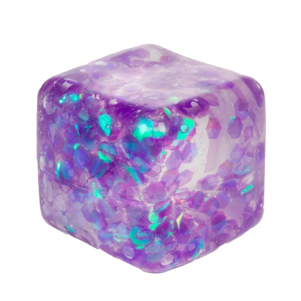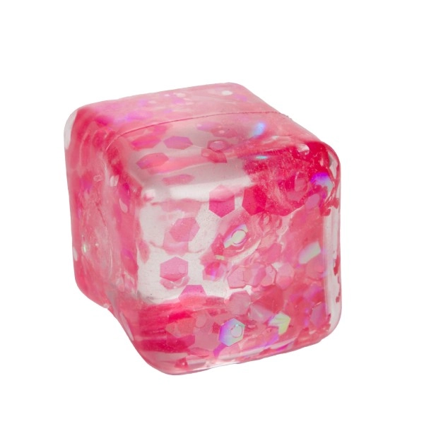 Антистрес кубчето с блясък помага за намаляване на нивата на стрес и напрежение по време на учене, работа и пътуване. Еластичният гелов материал е приятен на допир и предлага различни начини на употреба – просто го мачкайте, разтягайте или стискайте и наблюдавайте как успокояващият блестящ ефект естествено ви отпуска.