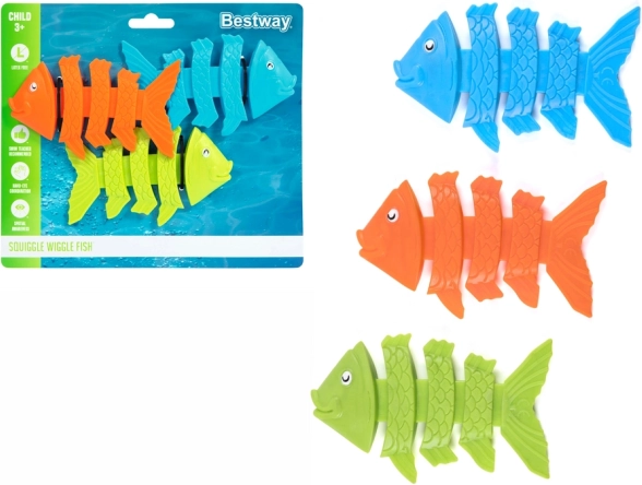 Комплектът от забавни гмуркащи се рибки ще превърне всяко къпане в приключение. Трите цветни рибки (оранжева, зелена и синя) са създадени да потъват на дъното и да насърчават децата да се гмуркат. Играта им помага да развиват координация на движенията и да подобряват плувните умения.