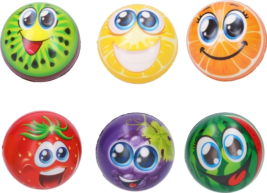 Това малко топче с диаметър 7,5 cm предлага забавление за деца от всички възрастови групи. Благодарение на ярките си цветове и плодовия дизайн привлича вниманието и е чудесен начин да се запълни свободното време.