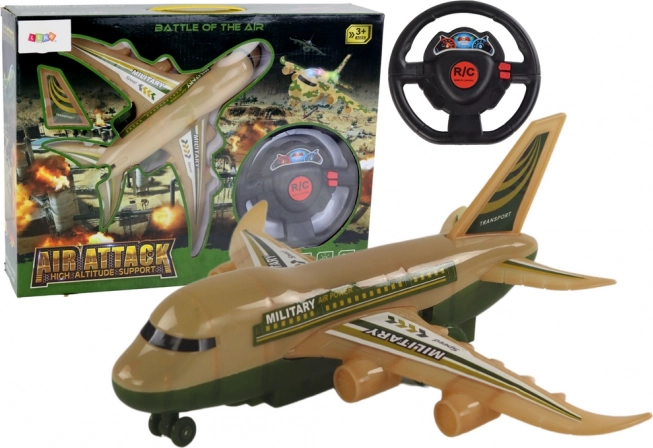 Забавна играчка във формата на дистанционно управляван самолет, оборудван с военен камуфлаж в кафяво-зелени нюанси, предоставя на децата възможност за безкрайни приключения. Със здравата изработка и внимание към детайла ще зарадва всички малки почитатели на авиацията. Благодарение на включения контролер децата лесно поемат контрол над полета. Управлението е пригодено и за малки ръчички, което осигурява лесна манипулация.