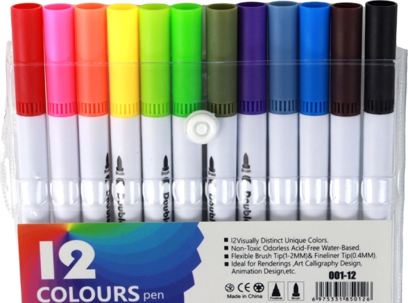 Комплектът включва 12 двустранни маркера, които позволяват да изразите креативността си по най-пъстроцветния начин. Независимо дали сте професионален артист или начинаещ, нашите маркери ще отговорят на очакванията ви за качество и разнообразие.