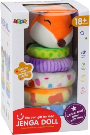 Очарователната плюшена образователна пирамида с лисица ще зарадва малчуганите с весели цветове и мек материал. Децата подреждат цветните рингове от най-големия към най-малкия, тренират фината моторика, логическото мислене и учат цветове и размери. Безопасна играчка със сертификат CE и стандарт EN71, подходяща от 18 месеца.