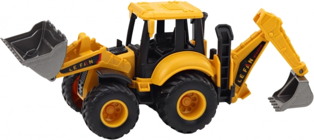 Жълтият багер за малките почитатели на строителните машини носи реалистична игра у дома и на площадката. Благодарение на две сменяеми кофи и тяхното плавно регулиране децата лесно се справят с товарене, преместване и копаене. Гумените колела осигуряват стабилно движение дори върху неравни повърхности, а компактният размер позволява играчката да бъде взета навсякъде.