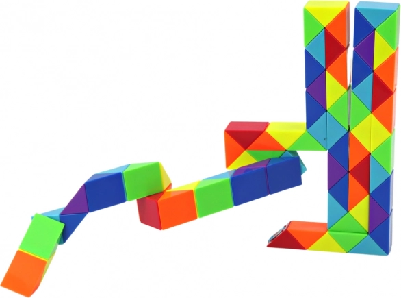 Магическата змия е цветен логически пъзел, който можете произволно да усуквате, огъвате и подреждате в десетки оригинални форми. Здравите свръзки между елементите осигуряват плавно въртене и стабилност, така че строенето е интуитивно и забавно. Благодарение на ярките цветове всяко творение е не само креативно предизвикателство, но и визуално атрактивна декорация.
