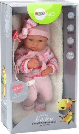 Тази розова бебе кукла със стилен свитер на райета, шапчица и шал е идеален спътник за ежедневна игра. Благодарение на подвижните крайници куклата лесно може да се слага да седи или да ляга, което стимулира креативни сценарии и реалистична грижа.