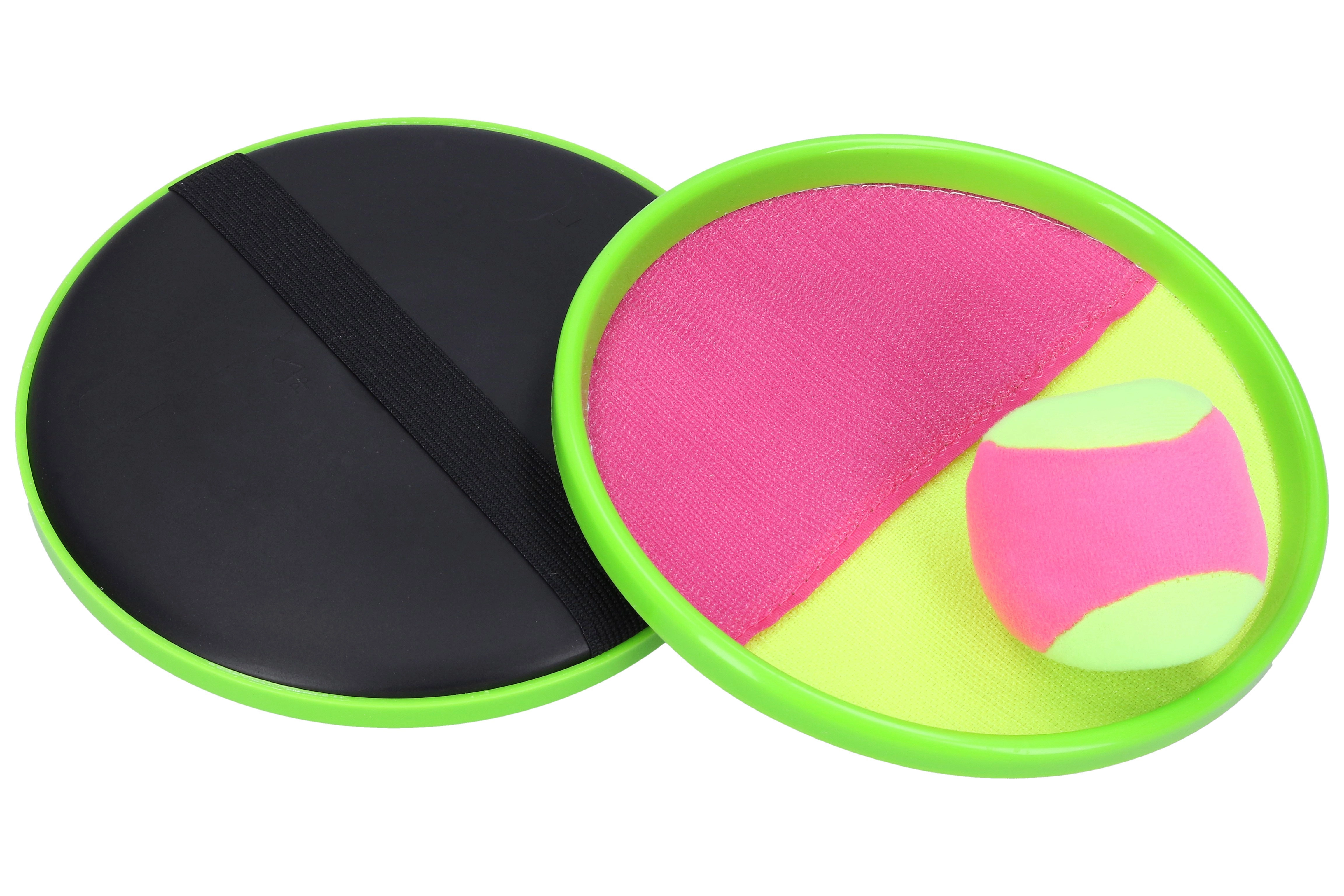Насладете се на лятно забавление с плажната игра Хвърли и хвани. Хващайте топката с помощта на чиния с велкро и се радвайте на безгрижно движение на плажа.