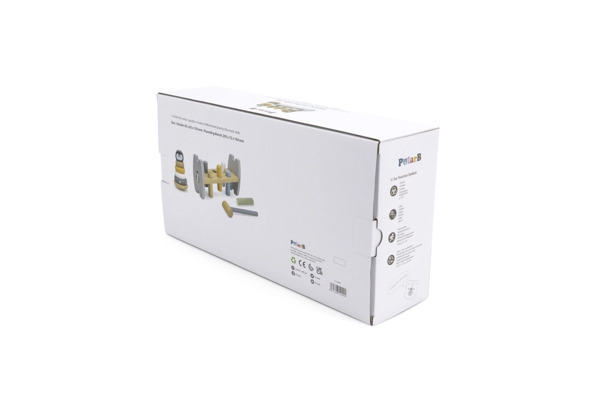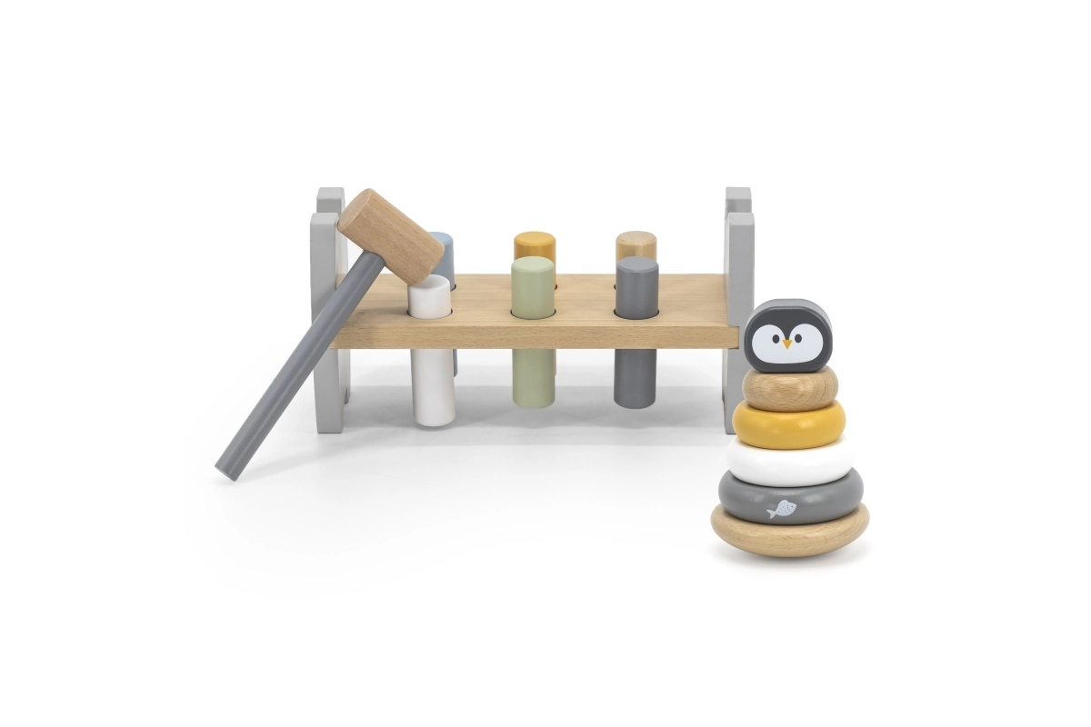 Запознайте се с удивителния комплект от серията PolarB на Viga, съдържащ две пастелни дървени играчки: образователна пирамидка и чукче с пингвин. Тези играчки не само предлагат много повече от обикновено забавление, но и допринасят за развитието на важни умения у детето.