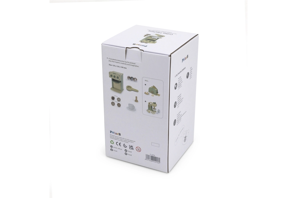 Детската кафемашина позволява да се симулира приготвяне на кафе, което допринася за реалистична игра и развитие на ролеви умения.