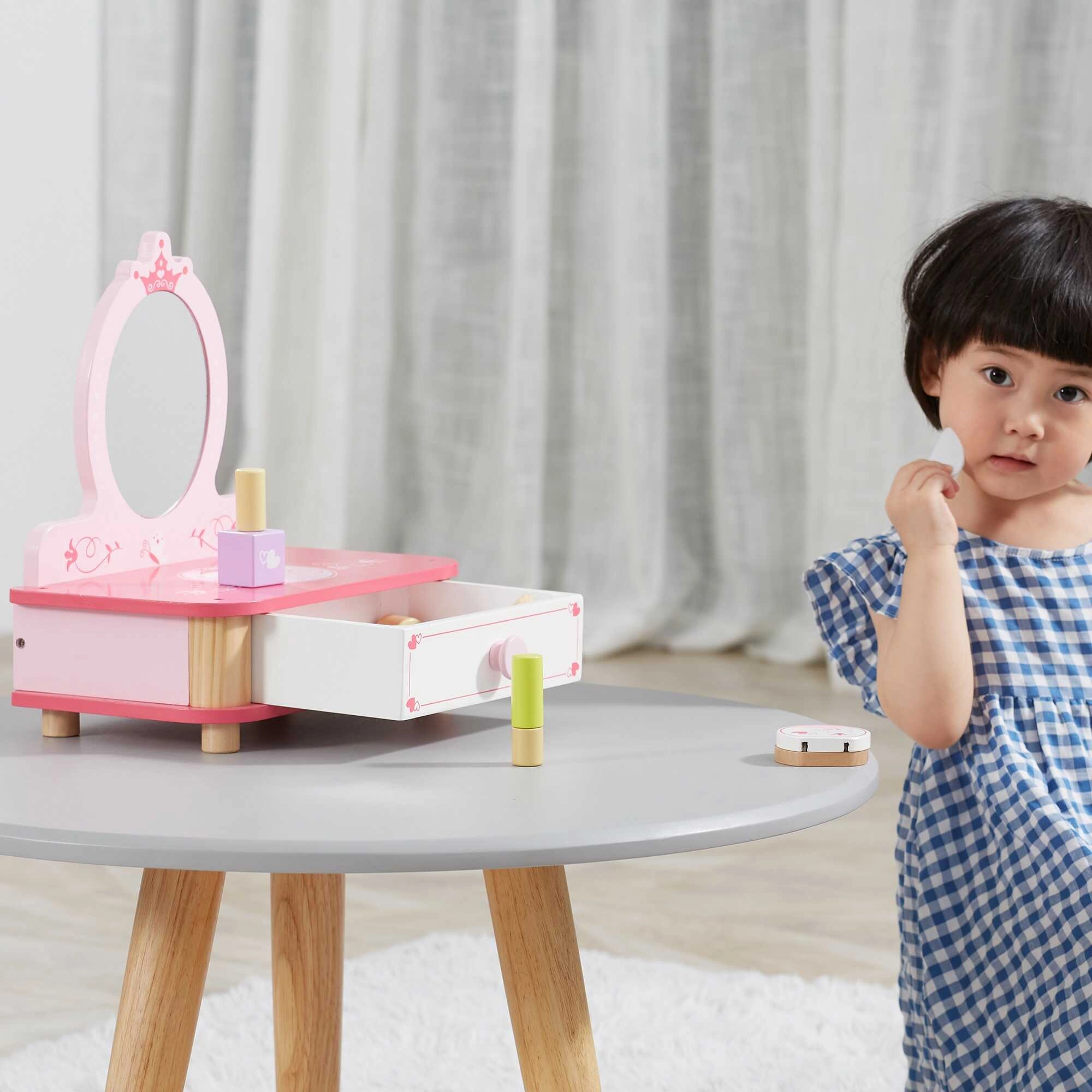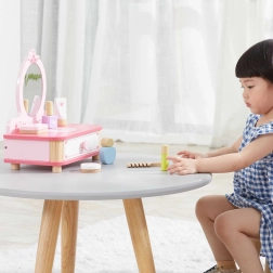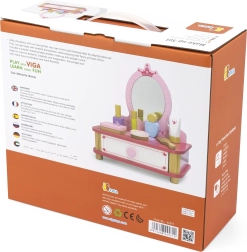 Дървената тоалетка Viga предлага огледало и просторно чекмедже, където малките принцеси могат да съхраняват своите съкровища. Розовото изпълнение придава на продукта елегантен вид и чудесно пасва в детската стая.