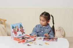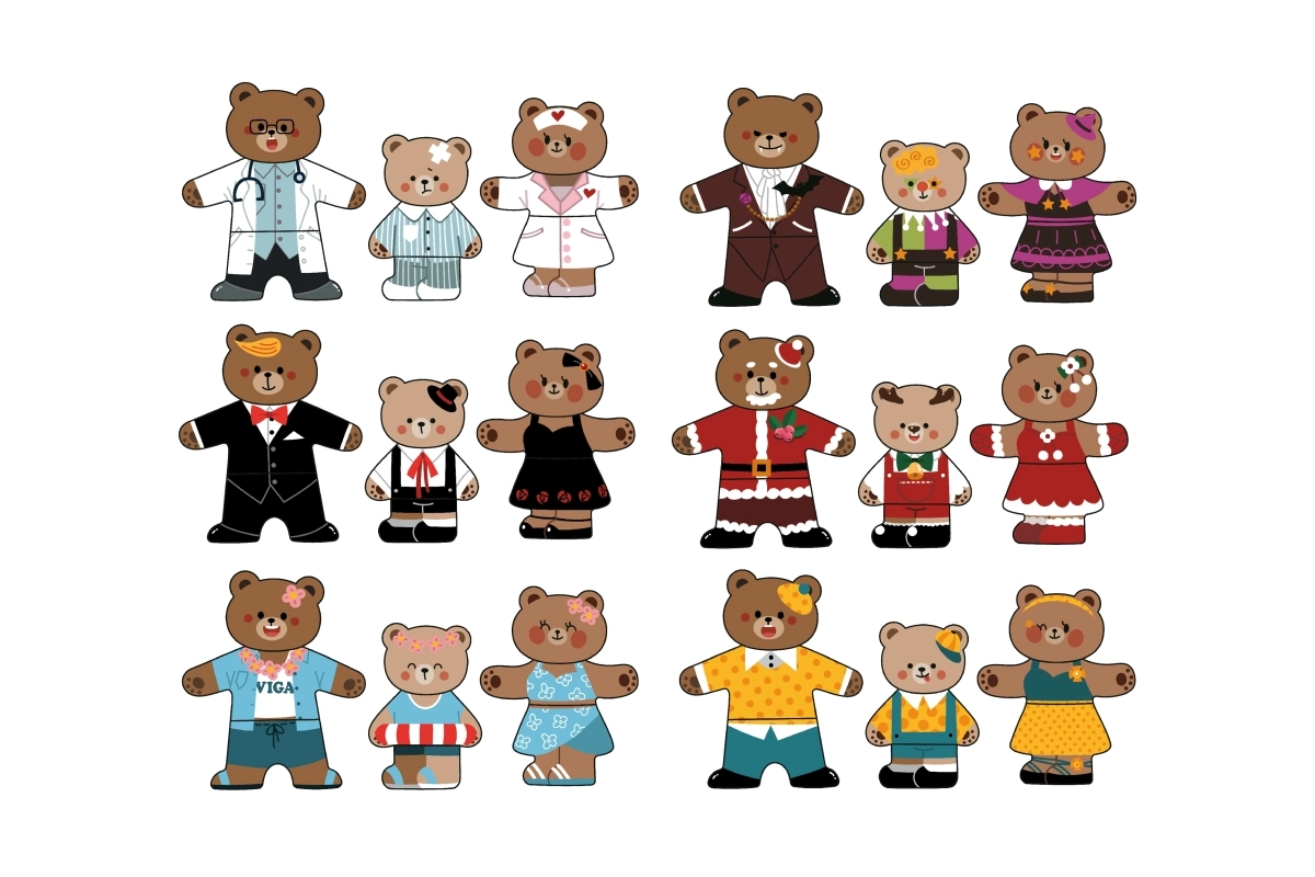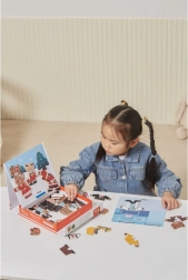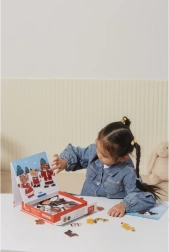 Този креативен комплект предлага популярното дървено магнитно обличане с мотив на мечешко семейство. Децата могат да подреждат различни тоалети и изражения, да изпробват професии и ежедневни ситуации и да създават свои истории. 54 магнитни части предлагат множество комбинации за дълги часове забавление.