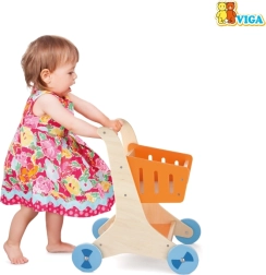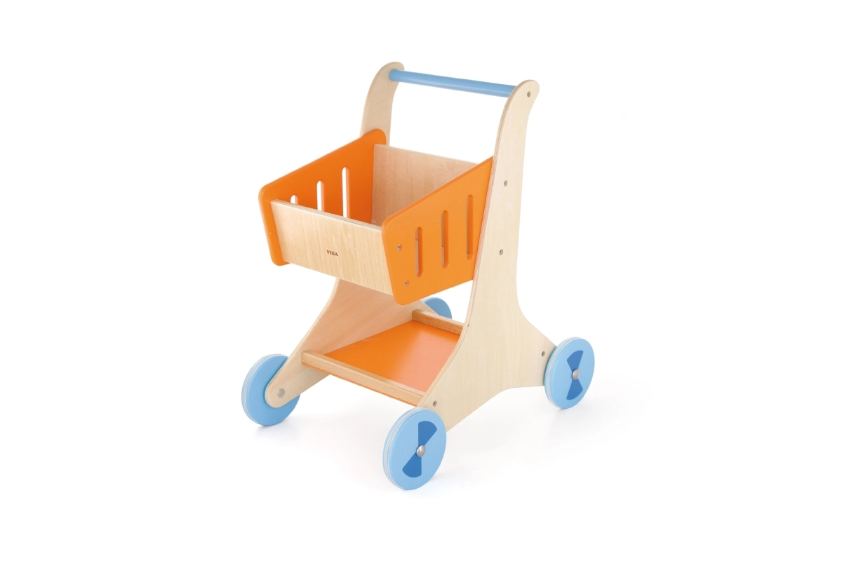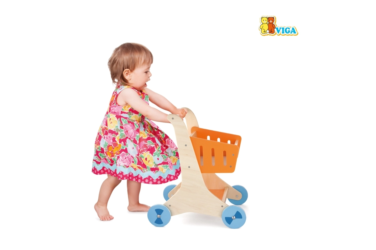 Подарете на децата радостта от откривателството с дървена пазарска количка, създадена за игра на магазин и пренасяне на любими играчки. Благодарение на здравата дървена рамка, удобната дръжка и четирите плавни колелца количката е стабилна и лесна за управление дори от най-малките.