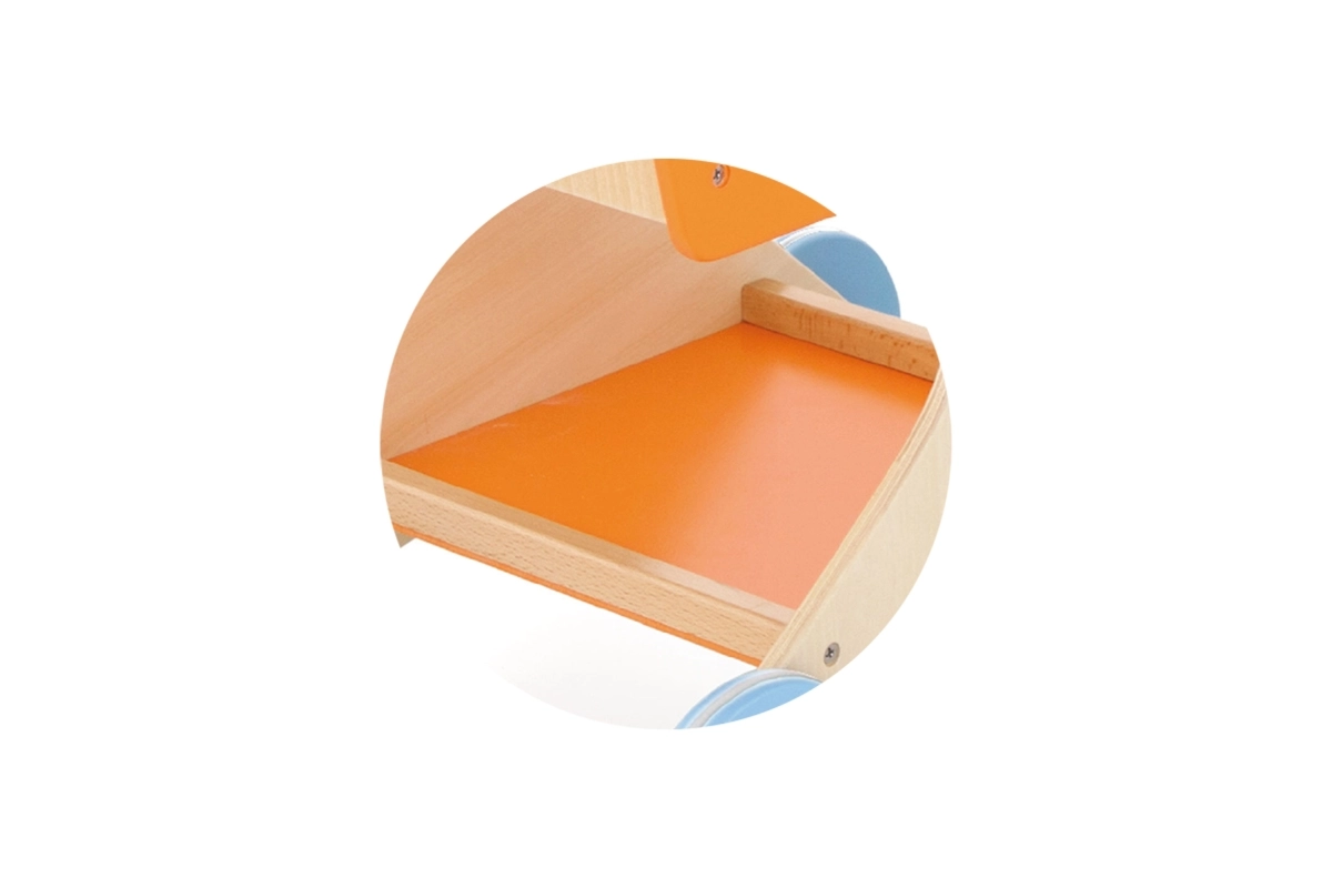 Четири здрави колелца осигуряват гладко и тихо придвижване по пода, идеално за детска стая и игрално помещение.