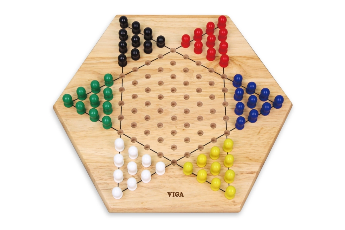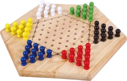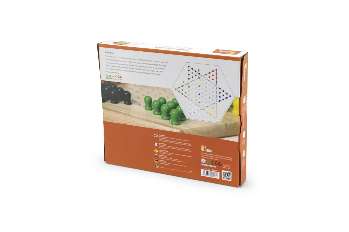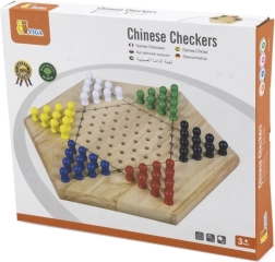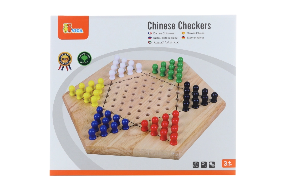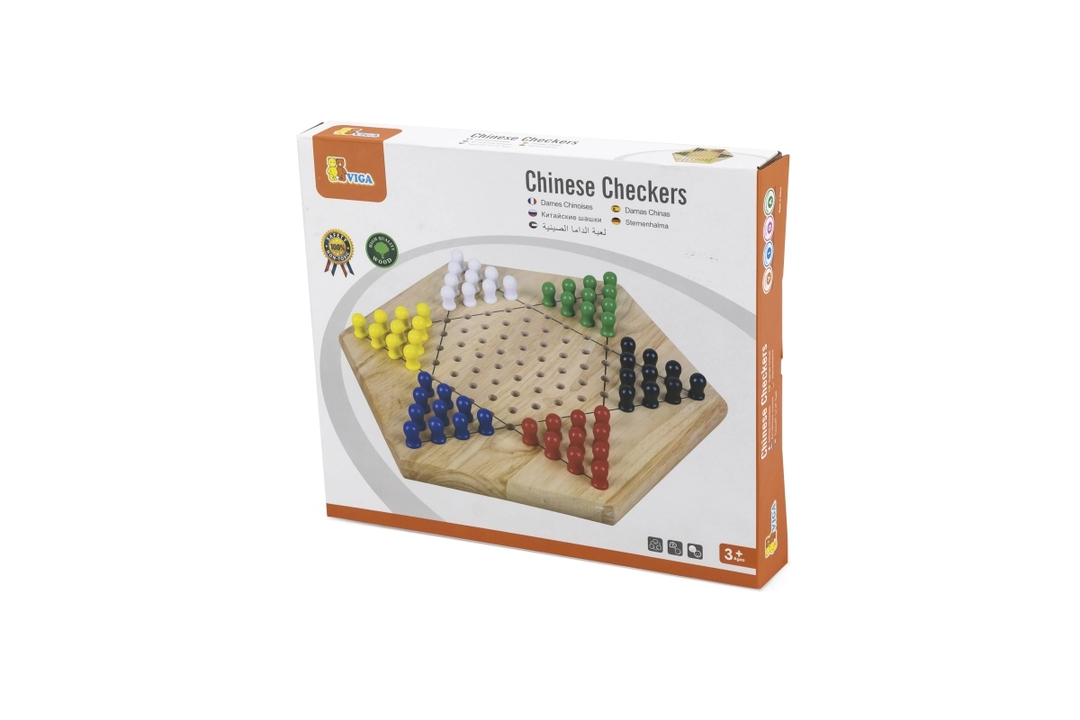 Открийте класическата стратегическа игра Китайски дама в качествено дървено изпълнение. Шестоъгълната дъска с цветни колчета за 2–6 играчи развива логическо мислене, планиране и търпение. Идеална семейна игра от 3 години с издръжлива изработка и ясни цветове за лесна ориентация.