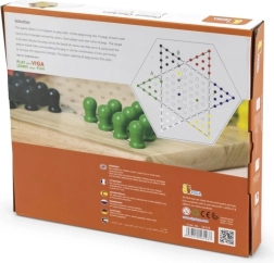 Китайски дама е популярна разновидност на играта халма, в която целта е да преместите всичките си фигури в противоположния връх на звездата. Дървената игрална дъска с равномерни отвори и цветните колчета осигуряват удобно и ясно gameplay изживяване за деца и възрастни.
