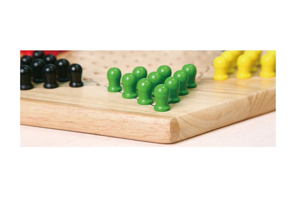 Гладка дървена дъска с прецизни отвори гарантира удобно поставяне на колчетата и дълъг живот на цялата игра.