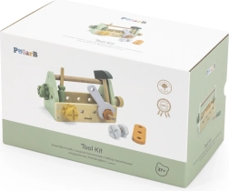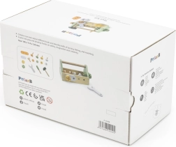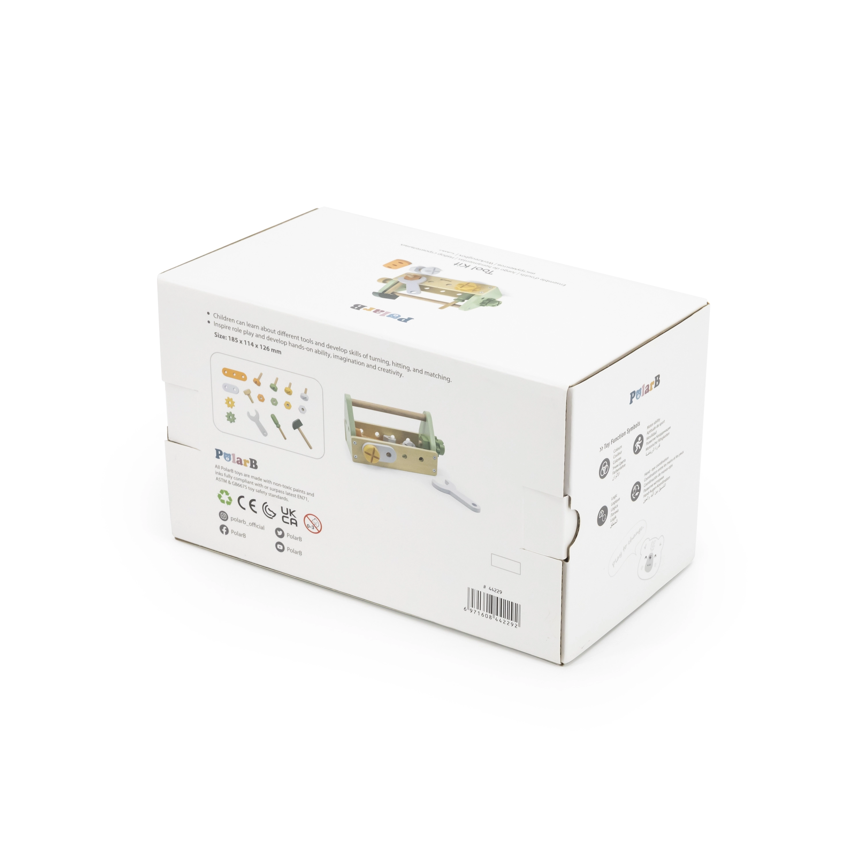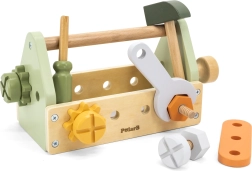 Тази стилна дървена кутия за инструменти в нежните цветове на колекция POLARB предлага на децата безопасен и забавен начин да откриват света на инструментите. Частите са удобни за хващане, без остри ръбове и лакирани с безопасни бои, подходящи за деца.