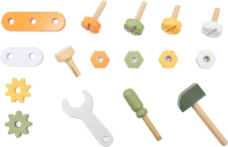 Децата могат да завинтват, заковават и да сглобяват прости механизми със зъбни колела – като така естествено тренират ловкостта на пръстите, търпението и пространственото въображение. Комплектът е идеален както за самостоятелна игра, така и за съвместно творчество с родителите.