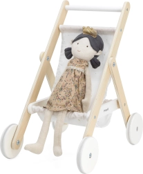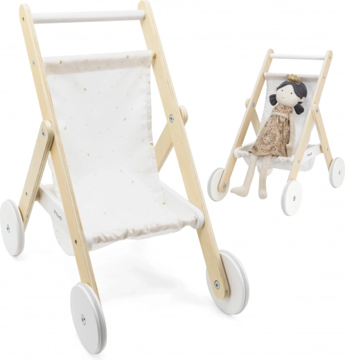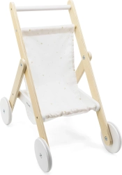 Текстилната седалка с мотив на нощно небе е приятна на допир и лесна за поддръжка. Практичният долен кош събира дребни аксесоари, шишенца или любими играчки. Количката е идеална за кукли и плюшени играчки с височина приблизително до 38 см.