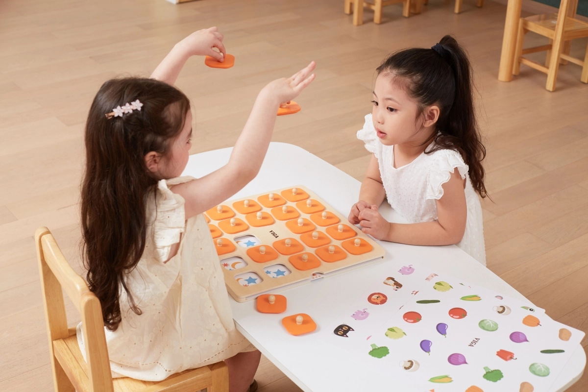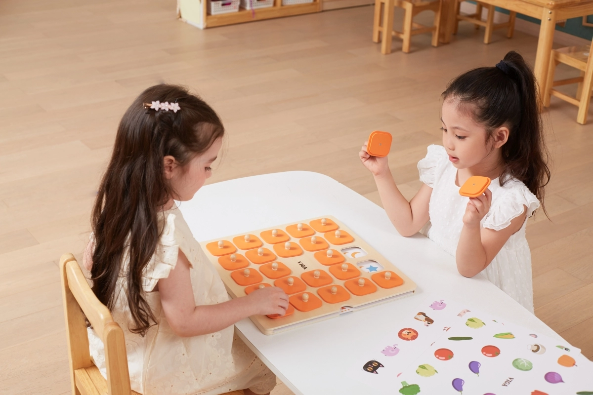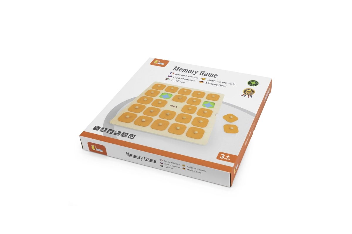 Голямата Montessori мемори игра Viga е идеална за споделени семейни моменти и обучение в детската градина. Децата повдигат дървените капачета с дръжки, запомнят изображението и търсят неговия чифт – прост принцип, който отлично развива логическо мислене, визуална памет и внимание.