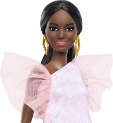 Стилната кукла BARBIE Моделка в розова рокля с бухнали ръкави носи безкрайни възможности за креативна игра. Благодарение на модерното облекло, ефектните златисти обеци и сините обувки е идеална за модерен стайлинг, разказване на истории и развитие на детското въображение. Куклата е част от колекция, която празнува разнообразието от нюанси на кожата, коси и стилове. Подходящо за деца от 3 години.