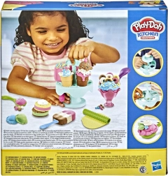 Създайте свои собствени сладки творения с креативния комплект Play-Doh! Този забавен сет включва всичко необходимо на децата, за да направят цветни сладоледени чаши и фунийки – от стойка за фунийки, през чашка и сладоледена лъжица, до кутийки с моделираща маса и аксесоари за декориране. Идеален за развитие на въображението и фината моторика при деца от 3 години.