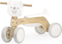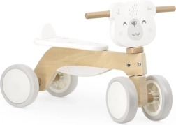 Здравата дървена конструкция от качествен материал е допълнена с задна опора на седалката, която не позволява на детето да се плъзне назад. Ергономично оформеното кормило с мотив на меченце подпомага естествения захват и сигурното управление.