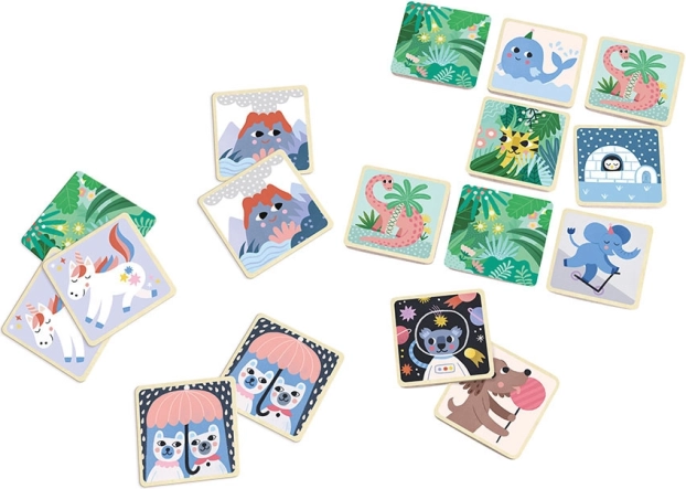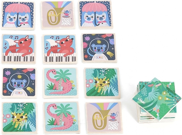 Дървеното мемори Vilac е идеално за деца, които обичат цветни илюстрации и забавни игри. Тези игрални картончета, перфектно пригодени за малки детски ръчички, помагат да се развиват речниковият запас, паметта и наблюдателността.