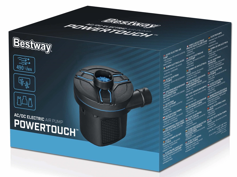 Електрическата помпа Bestway е многофункционално устройство, което не само надува, но и изпуска въздух, което е полезно при прибиране на надуваеми изделия. Благодарение на своята компактност и лекота е лесна за пренасяне и идеална за пътуване. Разполага с три универсални накрайника, които пасват на повечето вентили.