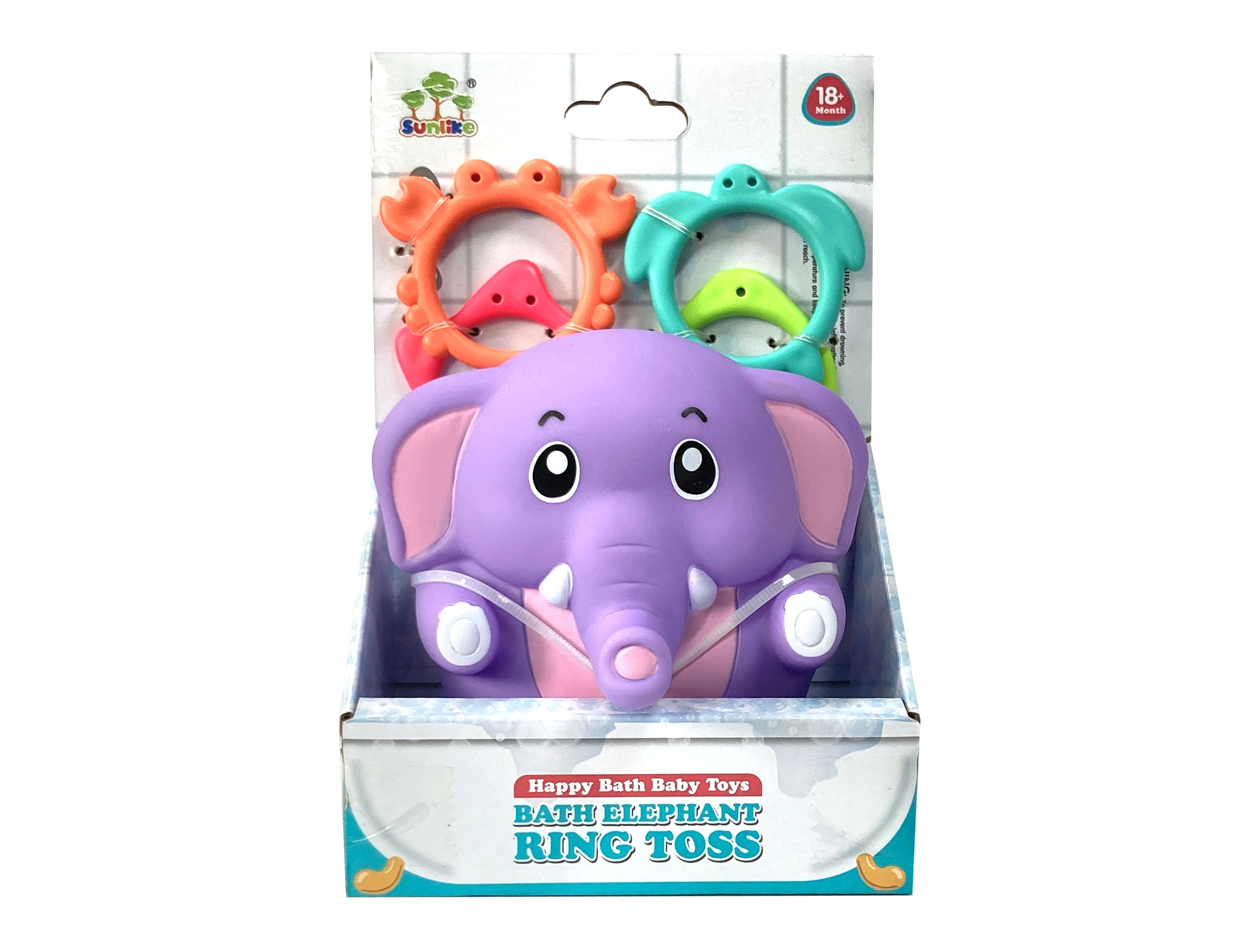 Играчка за вана във форма на слон с пръстени за хвърляне е перфектно забавление за вашите деца по време на къпане.