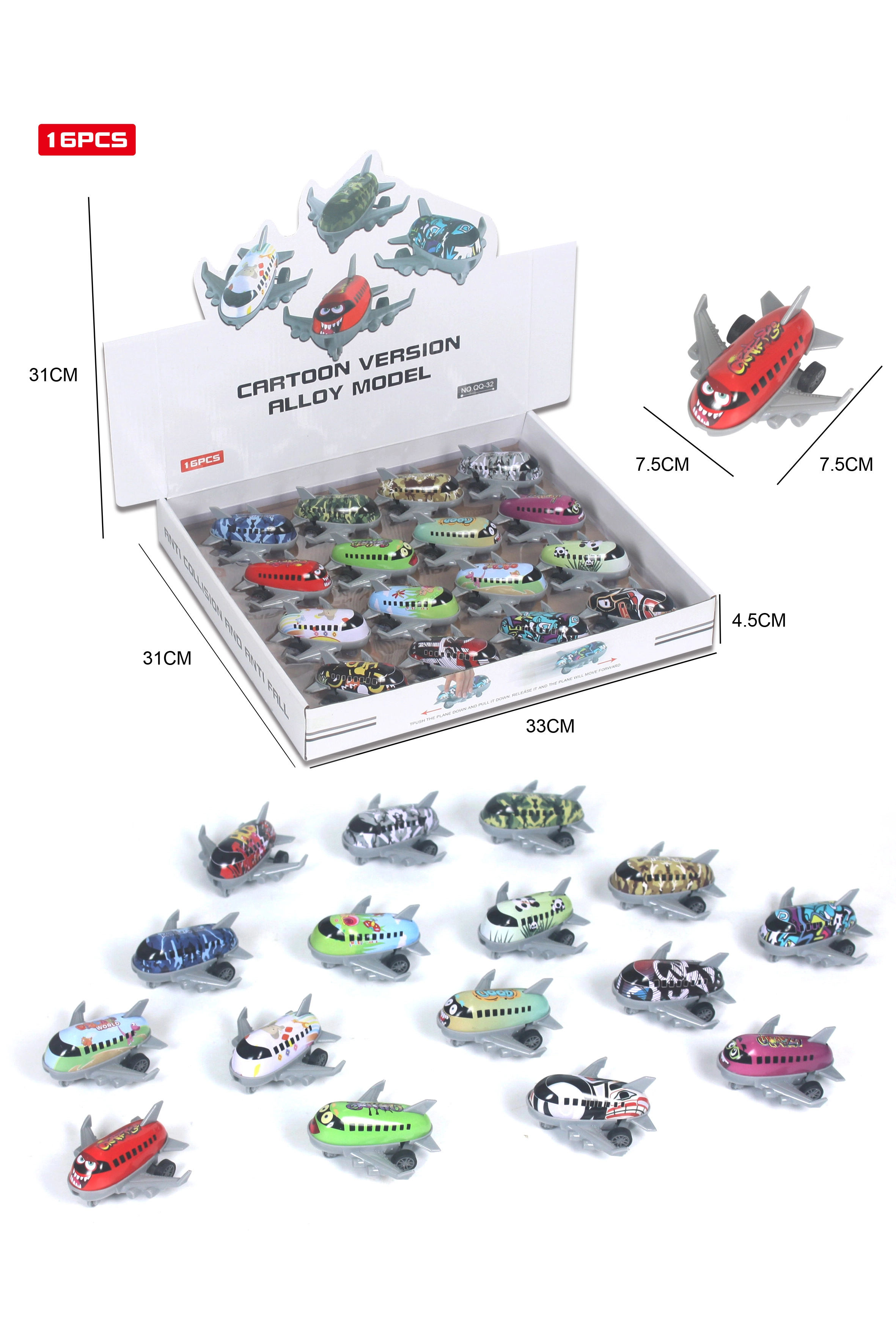 Самолетът е оборудван с механизъм за обратно навиване, който повишава интерактивността и добавя ново измерение към играта. Предлага се в 16 различни цветови варианта, което гарантира, че всяко дете ще намери своя любим стил. Перфектен като подарък или за ежедневна радост.