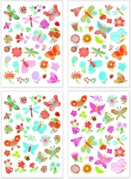 - 4 листа с мотиви: пъстри пролетни дизайни с пеперуди и цветя за деца и възрастни.