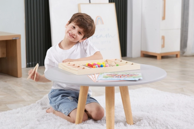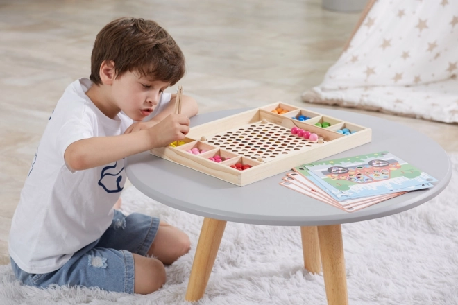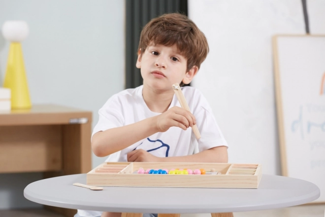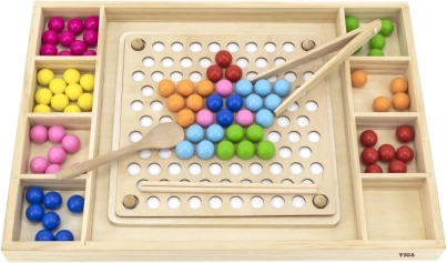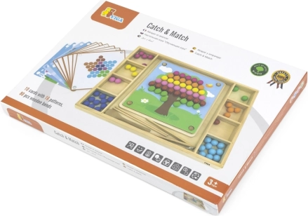 Дървената игра „Хвани и Подреди“ от марката Viga за деца от 3 години, която развива не само способността им да разпознават цветове и шарки, но и координацията око-ръка и концентрацията.