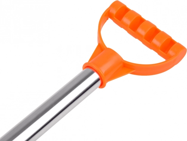 Здрава детска лопата с метален прът и удобна оранжева дръжка, идеална за игри в пясък и за почистване на сняг. Благодарение на леката конструкция и издръжливото пластмасово острие е безопасна за деца и същевременно достатъчно здрава за истинска помощ в градината. Лека и издръжлива, ергономична дръжка, метален прът, подходяща за пясък и сняг.