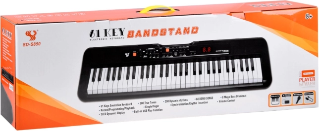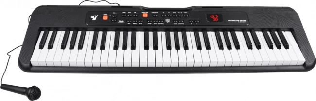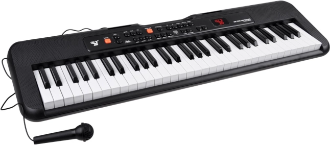 Открийте лек и преносим клавир с 61 клавиша, 200 тембра и 200 ритъма, който ще зарадва както начинаещи, така и напреднали. Предлага стерео звук, запис и възпроизвеждане, вход за микрофон и line in/out за свързване на телефон, слушалки или външни високоговорители. В комплекта има микрофон и USB захранване – идеален за домашни упражнения, партита и първи музикални стъпки.