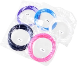 Открийте забавлението от 3D рисуването с универсалния комплект филаменти за 3D писалки. В опаковката ще намерите пет популярни цвята (син, розов, бял, лилав и черен), всеки с дължина приблизително 8 метра – достатъчно материал за часове творчество у дома и в училище.