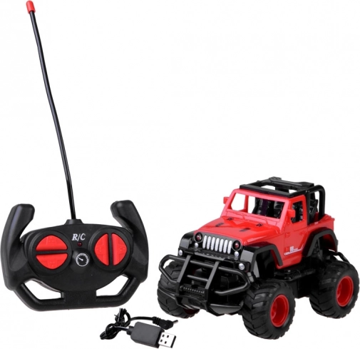Изживейте незабравими моменти с нашия състезателен офроуд автомобил, който е перфектно приспособен за каране извън пътя благодарение на гумени гуми с широк протектор. Колата има светещи фарове за по-добра видимост и дистанционно управление във форма на волан, което ви дава пълен контрол над превозното средство. Малките състезатели могат да се забавляват с часове по различни трасета, които сами създават.