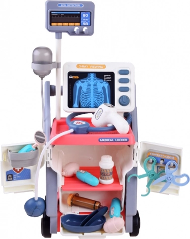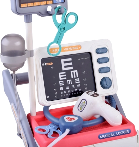 В комплекта има количка с колелца, стетоскоп, капкомер, термометър, отоскоп, неврологично чукче, инжекционна спринцовка, огледалце и други.
