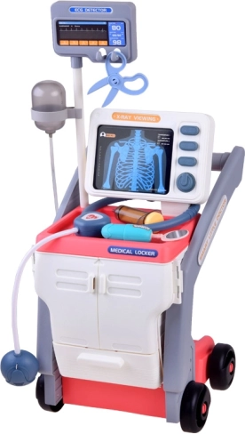 Тази лекарска количка е изцяло изработена от висококачествена пластмаса и е проектирана за цветна и забавна игра. Всички принадлежности са достоверни имитации на истински медицински инструменти и имат приятелски форми и весели цветове.