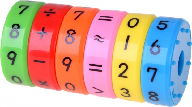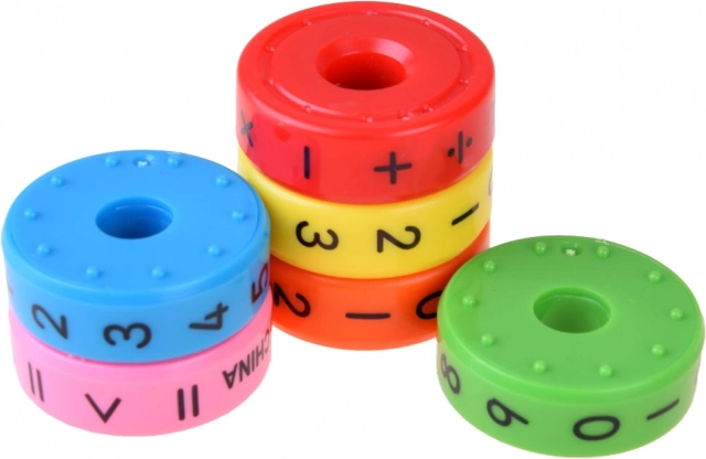 Шест цветни магнитни пръстена позволяват на децата да създават различни математически операции.
