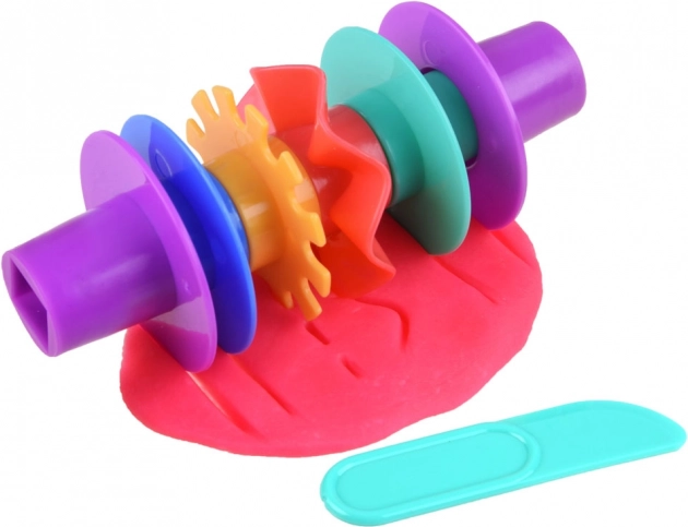 Комплектът съдържа всичко необходимо за креативни и образователни игри, включително пластилин, точилка, ножче и формички.